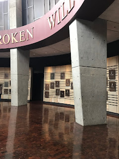 Did you know that Nashville is known as the Athens of the South? Today we visited an exact replica of the Parthenon that was built here for the Exposition of 1897. It was restored in the 20's during which a tornado ripped off the new roof. Today it houses the art collection of James M.Cowan and a full sized statue of Athena.
